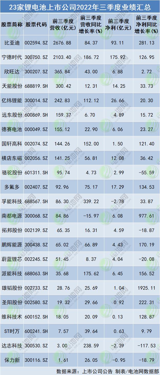 受(shòu)原材料價格大(da)漲及疫情等因(yīn)素影響,今年前(qian)三季度,锂電池(chí)業績雖不及锂(lǐ)資源上市公司(sī)業績亮眼,但多(duō)數企業也實現(xian)業績增長。