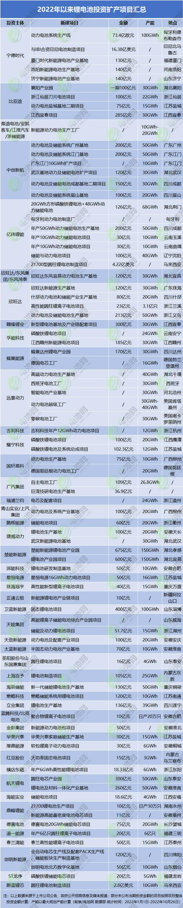 12月1日電池網公(gōng)布的數據顯示(shì),據不完全統計(ji),2022年以🔅來✌️,僅在锂(lǐ)電池生産制造(zao)領域,新公布的(de)投資擴産項目(mu)就多達84個,其中(zhōng)有69個公布投資(zī)金額,總金額超(chao)8427億元,平均單個(ge)項目投資額超(chao)🥵122億元;公布年産(chǎn)能的項目有68個(gè),總産能約🐪2038GWh。