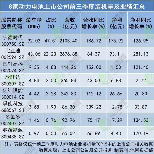1-9月,我(wo)國動力電池累(lei)計裝車量193.7GWh,累計(ji)同比增長110.5%。其中(zhōng)🐇,國内動力電池(chí)企業裝車量前(qián)十五名中上市(shi)公司9家:甯‼️德時(shí)代92.02GWh,占比47.51%;比亞迪(di)43.06GWh,占比22.23%;中創新航(hang)13.33GWh,占比6.88%;國軒高科(kē)9.35GWh,占比4.83%;欣旺達4.84GWh,占(zhàn)比2.50%;億緯锂能4.42GWh,占(zhàn)比2.28%;孚能科技3.68GWh,占(zhàn)比1.90%;多氟多1.46GWh,占比(bǐ)0.76%;鵬輝能源0.97GWh,占比(bi)0.50%。
